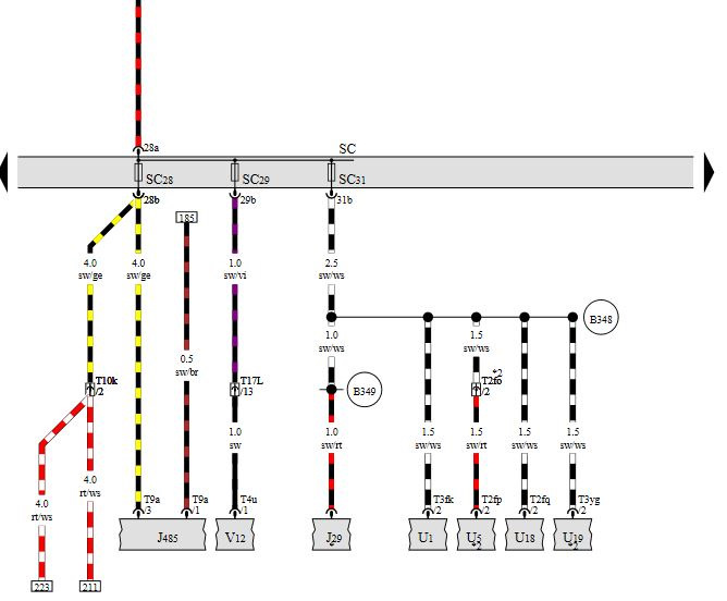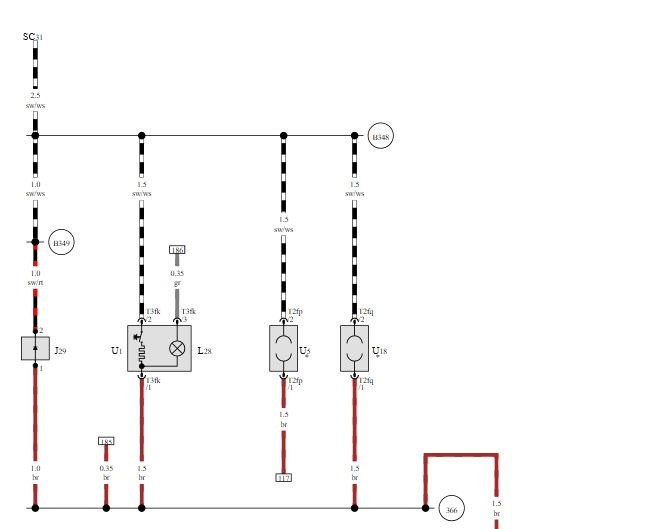 После изучения схем, стало ясно, что после отключения зажигания, 75я шина отключается от питания с помощью X реле (разгрузочное). При запуске двигателя, это реле также отключает потребители, а затем включает их после запуска двигателя. В ходе работы было выяснено, что реле работает исправно, а остаточное напряжение через предохранитель SC29 поступает на 75ю шину (после отключения реле) от моторчика заднего стеклоочистителя V12.